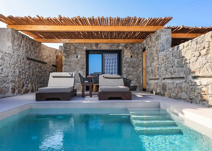 Queen Kalliopi Suites villası Mikonos Ulusal Havalimani havaalanından arabayla 10 dakikalık bir sürüş mesafesinde konaklamayı sunar. Şehir merkezine 1 km uzaklıkta olan bu tesis, yoğun bir günün ardından dinlenmek için dalma havuzu ile birlikte yüzme havuzuna sahip.